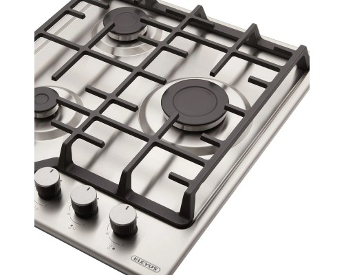 Тип поверхні - газова, нержавіюча сталь, кількість конфорок - 3, Задня ліва 1.7 кВт, Передня ліва 55 мм/ 1 кВт, права: потужністю 3 кВт, Управління - механічне, Газ-контроль - є, Електропідпал - так, Матеріал решіток - чавун, бутан/зріджений, 220 В, Розміри ніші для вбудовування - 5 х 41 х 48 см, 7.5 кг, нержавіюча сталь