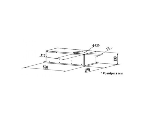 Тип - вбудована, в шафу, 550 м3/год, 70 Вт, 1, відведення повітря і рециркуляція, ширина корпусу - 52 см, Діаметр вентиляційної труби - 120 мм, - алюмінієвий, Тип управління - кнопкове, Матеріал корпусу - метал, Лампи - LED 1х1 Вт, 63 Дб, 520 х 280 х 130 мм, 4.8 кг, нержавіюча сталь